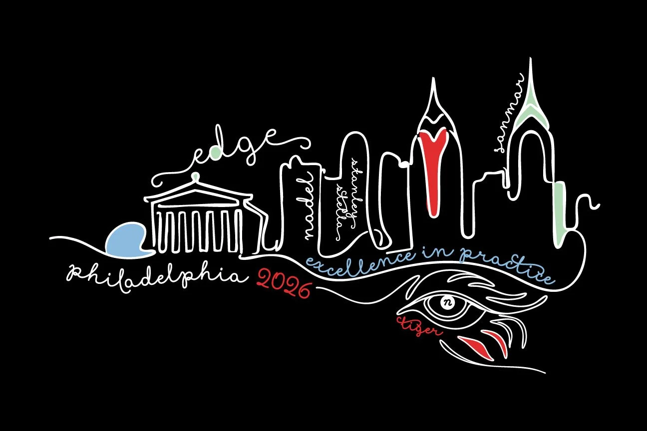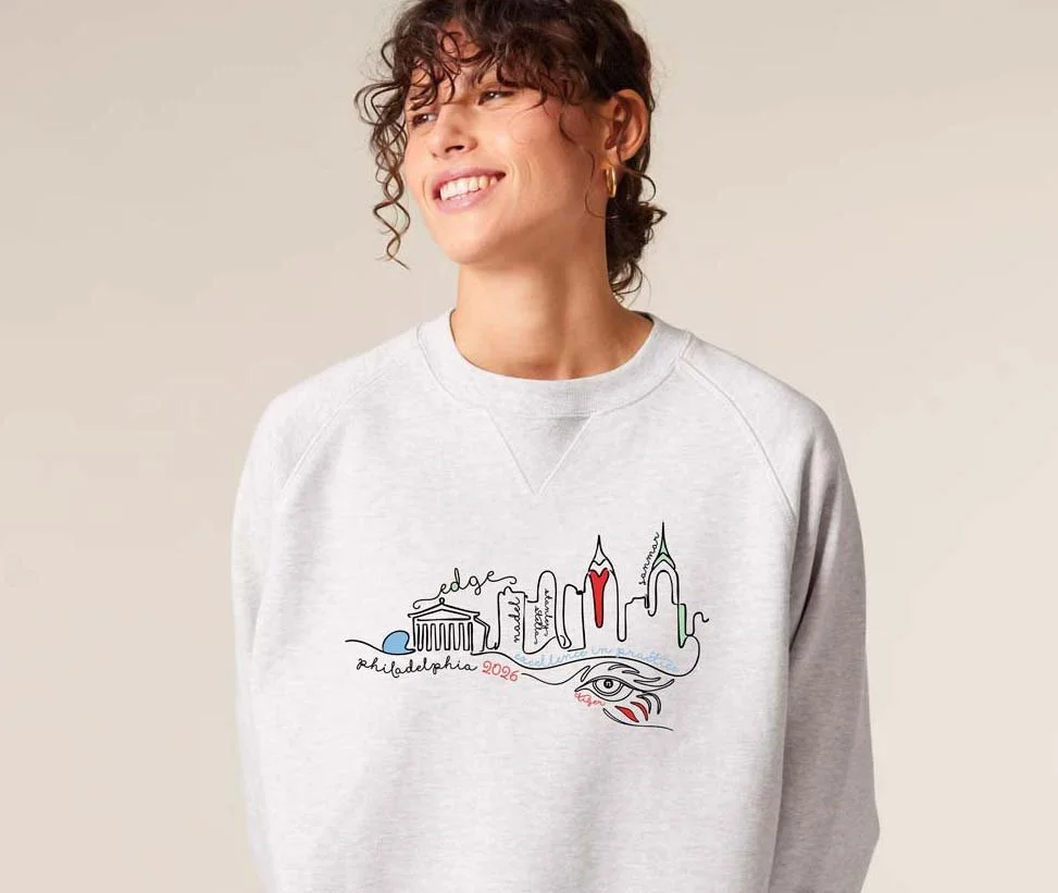 DK Design created the artwork for the EDGE event for their supplier, Sanmar. It features a strikingly minimalist interpretation of the city’s skyline rendered in clean, continuous line art. Iconic architectural forms are distilled to their most essential outlines, creating a sleek visual of Philadelphia that feels both instantly recognizable and refreshingly contemporary.